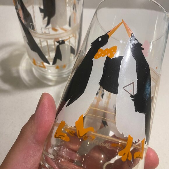 2 RARE Vintage USA GASOLINE Station Tuxedo Martini PENGUIN DRINKING GLASSES