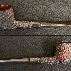 #1 - Pipe is features an ebony-coloured, rough-finish briar wood bowl with meerschaum liner and tapered stem.