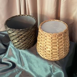 2 Rattan pots with plastic insert.