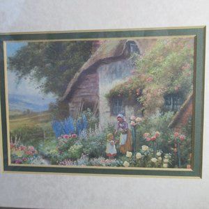 2 Reproductions Paintings by Arthur S. Wilkinson Garden in green frames