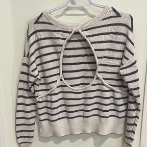Stay cozy and stylish with this striped cream and black sweater. Perfect for any casual outing.