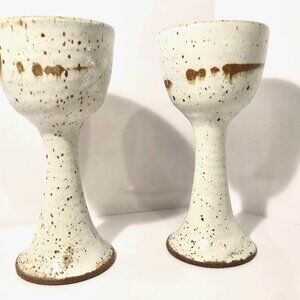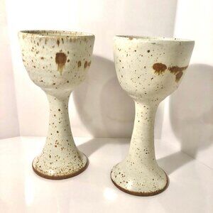 2 Speckled Pottery Glaze Goblets. Very smooth to the touch. Approx. 7" tall. Original, solid, no chips or cracks.
