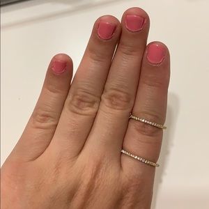 Sterling Silver with Gold plating (Gold Vermeil) and real Cubic Zirconia stones. Stones go all the way around the ring.