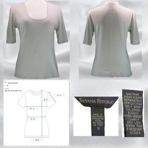 Banana Republic Light Gray Short Sleeve Top in Size Medium is in excellent pre-owned condition with no flaws. Measurements in photos - note measurements taken flat and unstretched. Waist, Hip and armpit to armpit (chest) is then doubled.