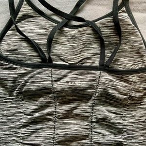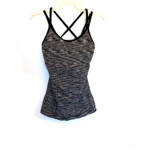1. Jockey Mid Impact Sports Tank Top with double elastic shoulder straps … one crisscrosses and the other straight