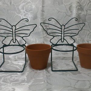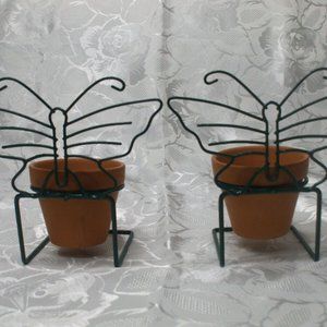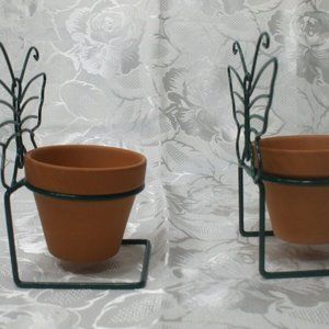 2 Terra Cotta Pots With Green Metal Butterfly Hang