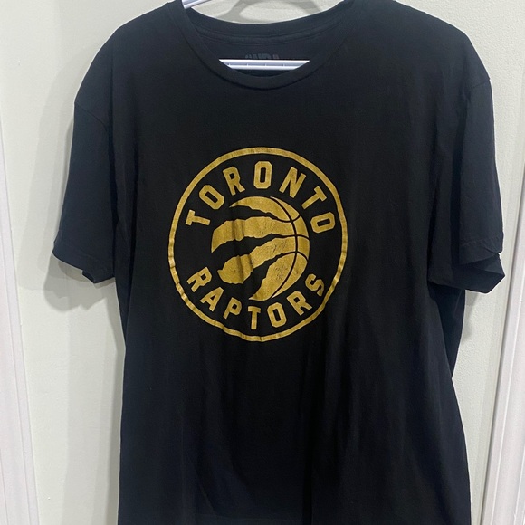 Show your team spirit with this Toronto Raptors black t-shirt. Perfect for any fan, this shirt features a bold gold logo on the front. Comfortable and stylish for everyday wear.