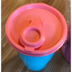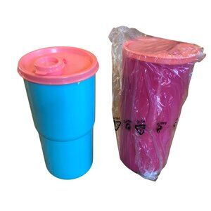 Enjoy your favorite beverages with these vibrant 30 oz Tupperware Thirstquake Tumblers. Equipped with flip-top lids, they're perfect for on-the-go hydration. Available in pink and blue, these durable tumblers are a must-have for active lifestyles.