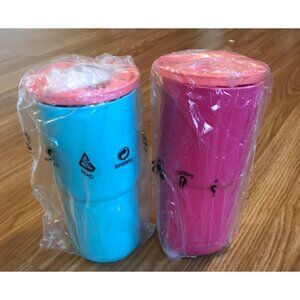 2 Tupperware Thirstquake Tumbler 30 oz With Flip Top On the Go Lids Pink & Blue