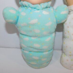 2 Vintage 80s Glo Worm Dolls Blue White Cloud Sleeping Awake Baby light up *READ
