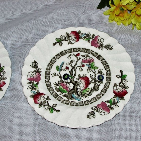 2 Vintage Bread Plates MYOTT INDIAN TREE Hand Painted 6 1/4" Staffordshire