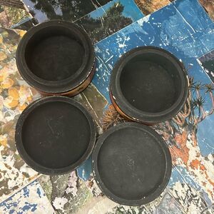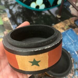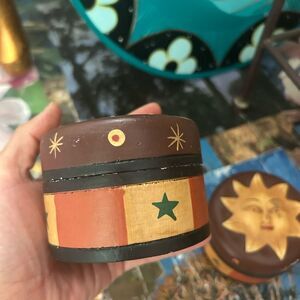 2 Vintage Celestial Trinket Box Wood Carved SUN & Moon Jewellery Holder 3.5"