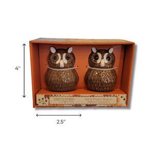 Add a touch of charm to your kitchen or dining table with this adorable set of 2 ceramic brown owl salt and pepper shakers. Each shaker measures 4" tall x 2.5" wide and is crafted with detailed owl design, perfect for kitchen decor, table settings, or as a whimsical gift.