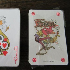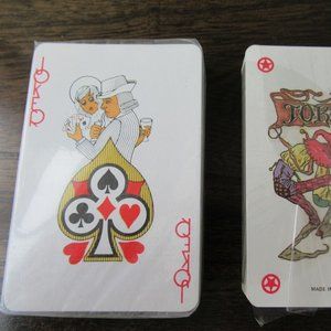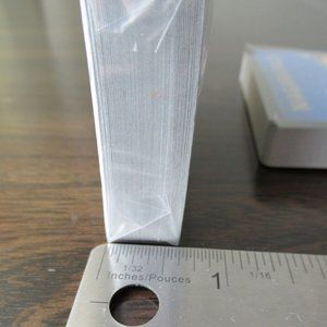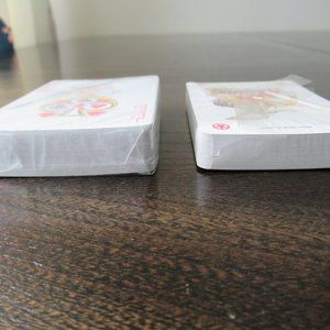 2 decks of playing cards in a cellophane package. Golf and Niagara Falls. The packaging of Niagara Falls is slightly damaged. We don't know how many cards are in each deck because we don't want to print it out. Golf deck height is 5/8" (fourth photo), Niagara Falls deck height is 1/2"(fifth photo). In the second photo on the left - Golf, on the right - Niagara Falls.