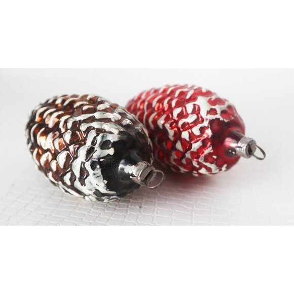 2 Vintage German Mercury Glass Christmas Ornament Pinecones Pine Cones