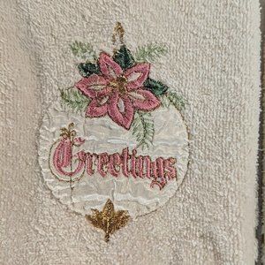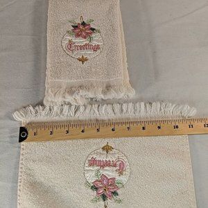 2 Vintage Seasons Greetings Hand Towels Christmas Holiday Bathroom Cannon Cotton