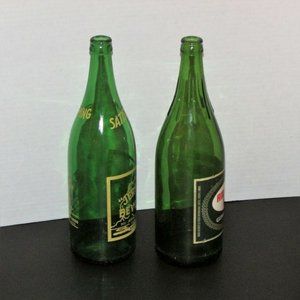 2 Vintage Soda Pop Bottles JERSEY DRY AMERICA DRY GINGER ALE 30 oz Green Glass