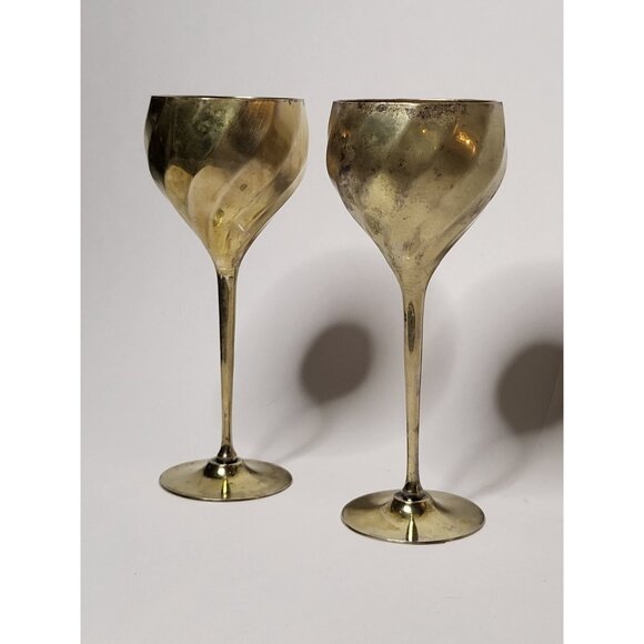 2 Vintage Solid Brass Wine Champagne Goblets with Patina Made in India 8" Tall.