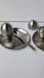 2 Vintage Stainless Steel Egg Cup Sets with Salt Shakers Unused 1 missing spoon