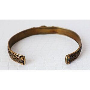 For your consideration are two vintage tribal cuff bracelets featuring intricate silver filigree craftsmanship, accented with black onyx and turquoise stones. Made with silver-tone and brass materials, they exhibit a timeless artisan design suitable for both collectors and jewelry enthusiasts. These bracelets showcase handcrafted detailing and a classic open cuff style.