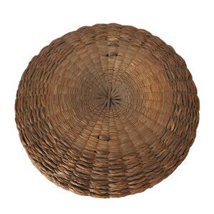 The smaller one is made out of palm leaves and is lined inside. It is in good condition with no holes, no lining does have a few spots on the material. It measures 3" high by 6" diameter.