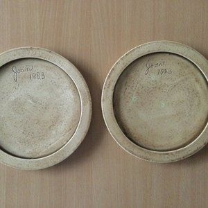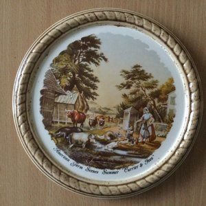 2 Vintage plates American farm scene Spring & Summer currier & Ives signed Joan