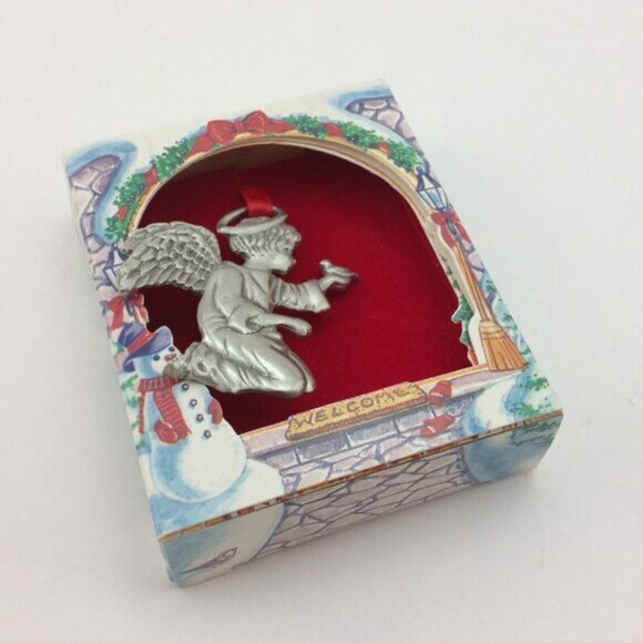 2 Vtg Pewter Angels Christmas Ornaments Lindsay Claire Designs Made in Canada