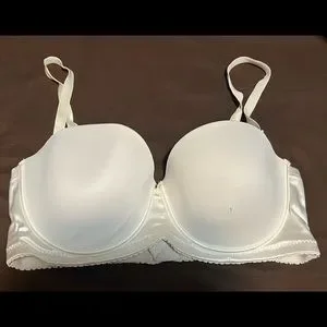 1 white strapless bra which also has removable straps. There is a small black mark on the white bra as shown in pictures.