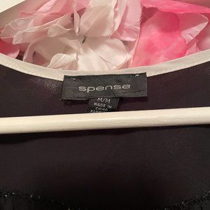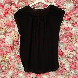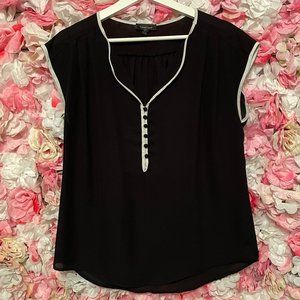 Spense Black with White Trim Sheer Cap Sleeve Top