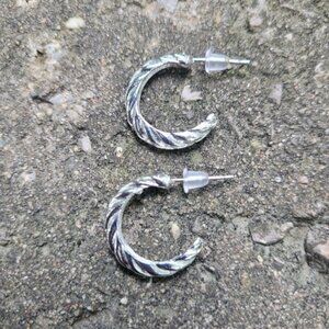 Silver toned statement hoop earrings. Brand new. These are costume jewelry.