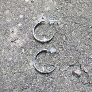 Silver toned statement hoop earrings. Brand new. These are costume jewelry.