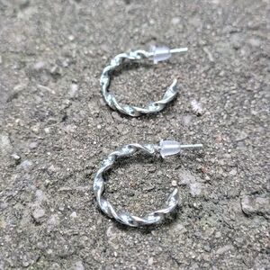 Silver toned statement hoop earrings. Brand new. These are costume jewelry.