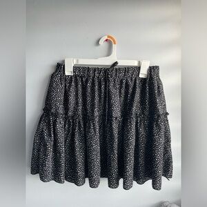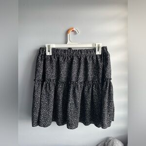 Chic black skirt with white polka dots. Has a unique ruffle layering that is very flattering. Skirt is in great condition. Message me if you’re interested :)