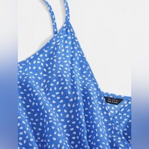 This one piece romper features a vibrant blue background adorned with charming white polka dots. Designed with thin spaghetti straps and a V-neckline, it offers a gathered elastic waistline for a flattering blouson effect. The shorts-style bottom provides a loose, flowing fit, perfect for a breezy summer day. Has only been tried on, message me if you’re interested:)