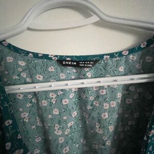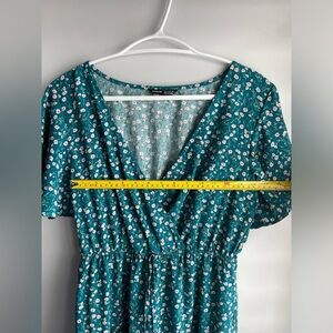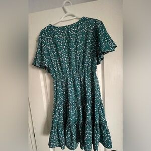 This pretty teal dress has a nice dainty fit with ruffled tiers in the bottom portion and beautiful flowy sleeves. This dress is in perfect condition. Message me if you’re interested! :)