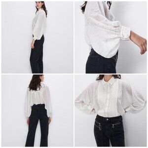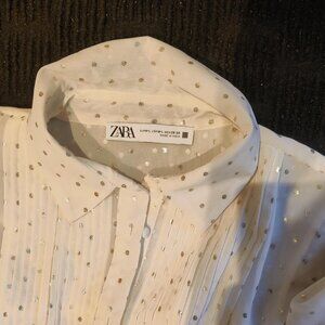 Zara white blouse with silver polka dots Brand new Size L