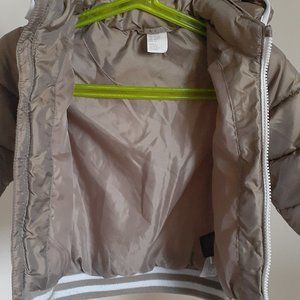 This unique toddler puffer jacket has a bit of gold metallic sheen to the fabric. It is poly fill with a hood. Size 12 - 18 months. Bundle with another 2 for $20 item.