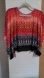 Stylish top with a vibrant red and black pattern. Features a unique geometric design.