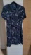 Stylish navy dress with floral pattern. Features short sleeves and a tie waist.