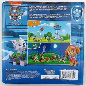 Nickelodeon PAW PATROL Hardcover Paw Patrol book. Soft hardcover cover and hardcover pages for durability. Pages flip for kids to match the opposite. Great for learning. Bright colorful pages. Book is 8.5 inches wide by 8.5 inches high. Book has both French and English words. Perfect for bilingual teaching. New book.