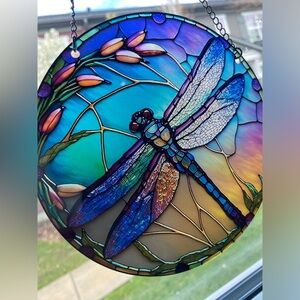🟣2 for $25🟣 Chromatic colored dragonfly window hanging acrylic disk suncatcher