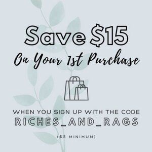 ✨ Use the code “RICHES_AND_RAGS " when registering for a new account to save $15 on your first purchase! ✨
