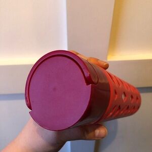 Lululemon pink glass water bottle! Great condition! Small (nearly invisible) scratches on plastic lid. Very durable and super cute!