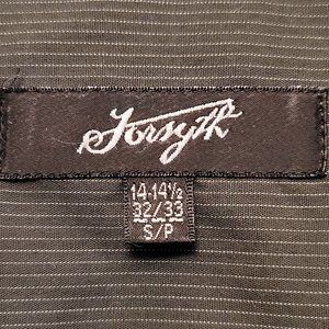 Size Small, 14-14 1/2, 32/33. Listed here is a dark green stripe button-up collar shirt. It has a left-side breast pocket and built-in collar stays. A great addition to a business or casual style! ๐๐ผ