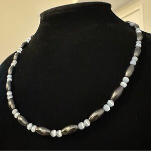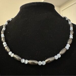 ✨2 for $30✨ Hematite, Pale Blue Cat’s Eye Gemstone Necklace / Wrap Bracelet