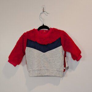 โ๏ธ Fit & Features: Two piece outfit set featuring blue and red plaid pants with cuffed ankles and navy blue drawstring waist, and fuzzy red top.