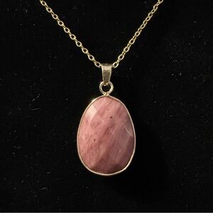 ✨2 for $30✨ Natural Rhodonite Pink Stone Pendant (Gold Tone Chain Necklace)