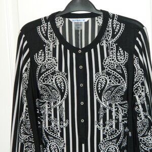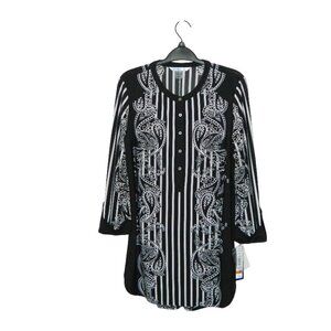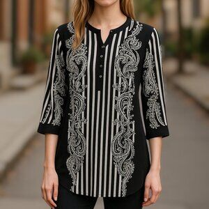 2 for/ $40 Nygard Half Button Up Black Paisley Striped Tunic Size Small