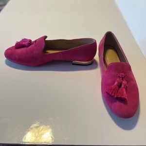 Talbots hot pink faux suede shoes with tassels size 6. Has beautiful gold heel. Like new not a mark or scoff on them except for the bottom. Comes from smoke and pet free home.