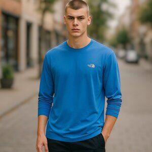 2 for/$30 The North Face TNF Blue Long Sleeve Outdoor Active Wear Shirt Size L